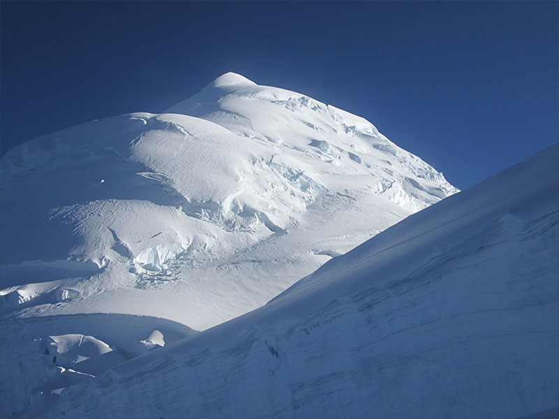 DAY 5: Second high camp at (6010m) – Huascaran south summit at (6768m) – Second high camp at (6010m) – high camp at (5350m) – Moraine camp at (4850m). (Climbing time: 16 hours (ascent & descent).